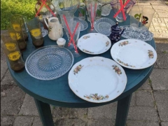 Lėkštės,stiklinės,šaukšteliai,šaukštai, vazos, ąsočiai, indai ir t.t.