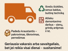 Krovimas, šiukšlių išvežimas, griovimu darbai