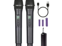 2 belaidžiai mikrofonai su garso reguliavimu ir USB-C įkrovimu, juodos spalvos
