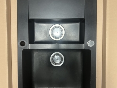 Naudota kriauklė, plautuvė akmens masės, 80 cm x 50 cm x 20 cm, juoda.