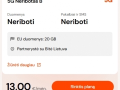 5G pokalbių planai 13 Eur/mėn viskas neribotai!